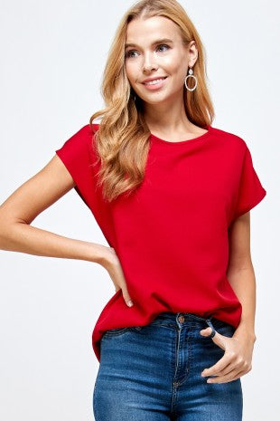 Classic Cap Sleeve Basic Top -Red