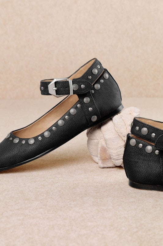 Studded Ankle Strap Ballerinas Flats. These elegant flats are beautifully